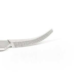 Зажим кровоостанавливающий изогнутый по ребру типа “Москит” зубчатый 154 мм З-62-4 ТП арт.300-18