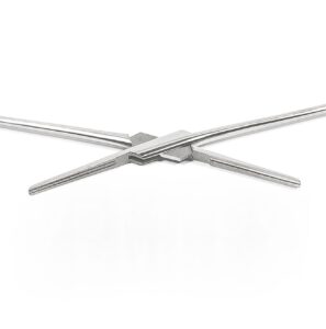 Зажим кровоостанавливающий 1х2 зубый зубчатый изогнутый №1 158 мм, З-119 ВП арт.300-2 ISO 127534 Белмединструменты