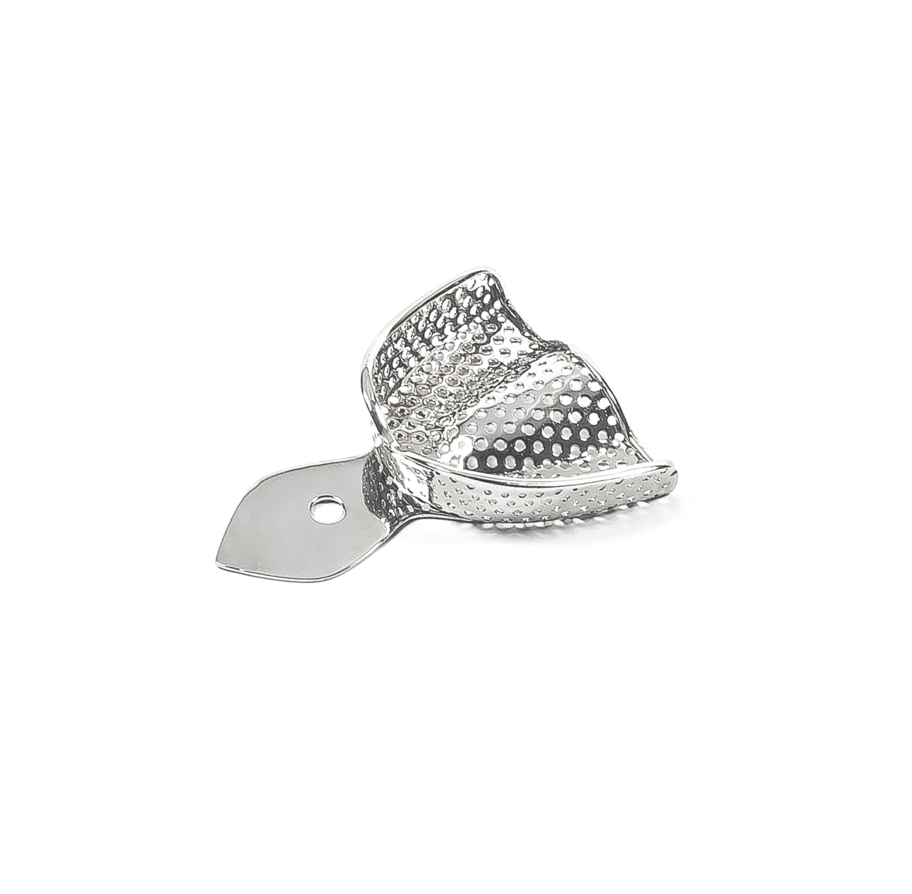 Стоматологическая оттискная ложка «Завод БелМедИнструменты ЗБМИ» перфорированная, стандартная, верхняя, №1, 786-1093 U5, предназначена для снятия оттисков верхней челюсти. Инструмент имеет ложе для оттискного материала, ограниченное бортами, и ручку для удержания и ориентировки в полости рта. Ложка перфорированная используется для снятия оттисков альгинатными, силиконовыми и другими оттискными материалами, которые не обладают достаточной прилипаемостью, чтобы удержаться на ложке без отверстий.