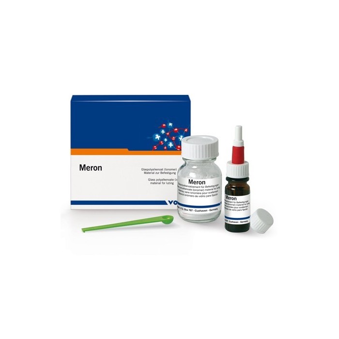 Стеклоиономерный фиксирующий цемент, разработанный ВОКО, с хорошей адгезией к зубной эмали и дентину. Физические свойства Мерона делают его идеальным материалом для закрепления коронок, мостов, вкладок и прокладок. Низкая температура отвердения, высокая прочность выделяют его среди других цементов.