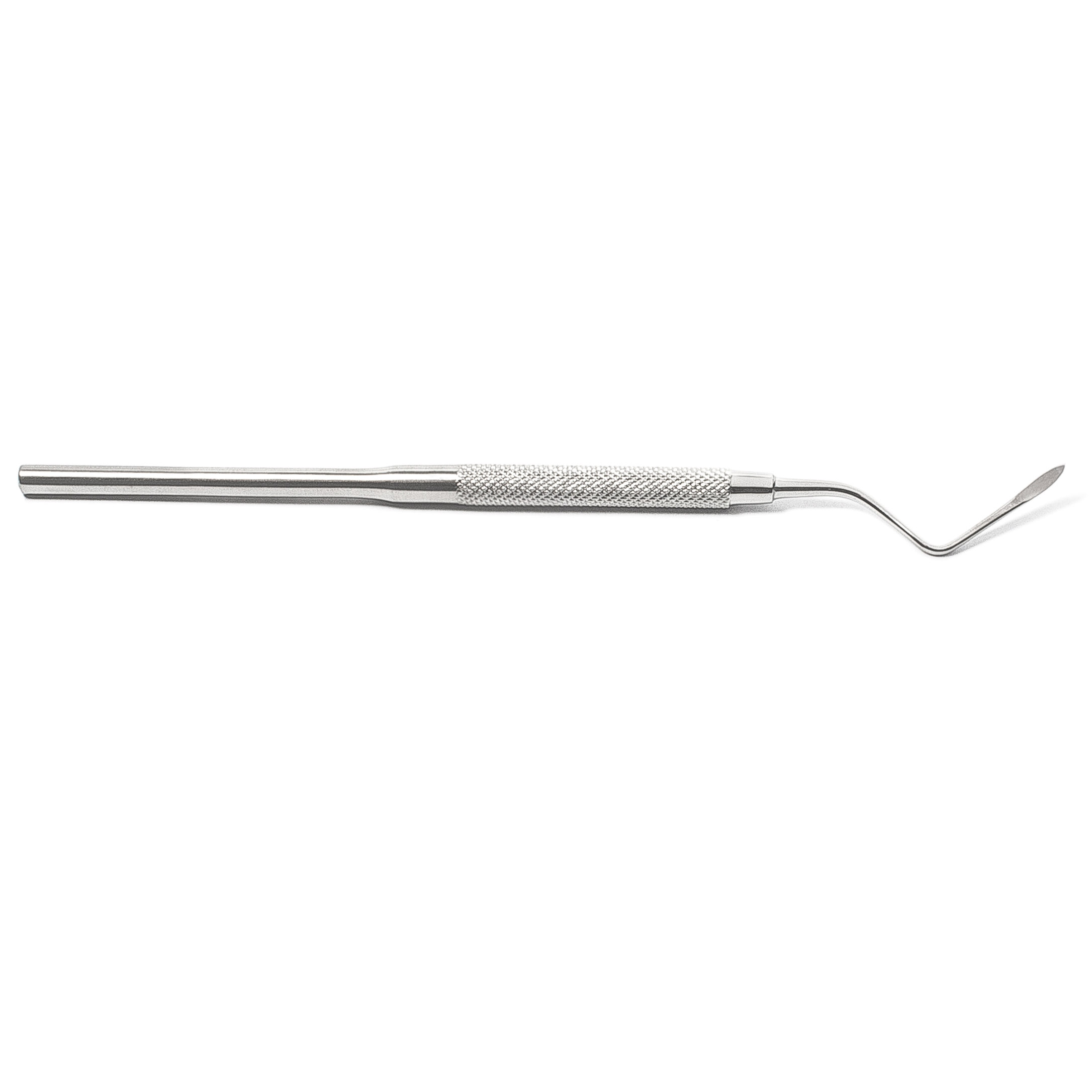 Прямой дизайн с двойным изгибом: Инструмент имеет специально сконструированную форму, которая позволяет легко маневрировать и достигать труднодоступных участков, особенно на правой стороне челюсти. Двойной изгиб обеспечивает оптимальный угол доступа и улучшает контроль над манипуляциями.