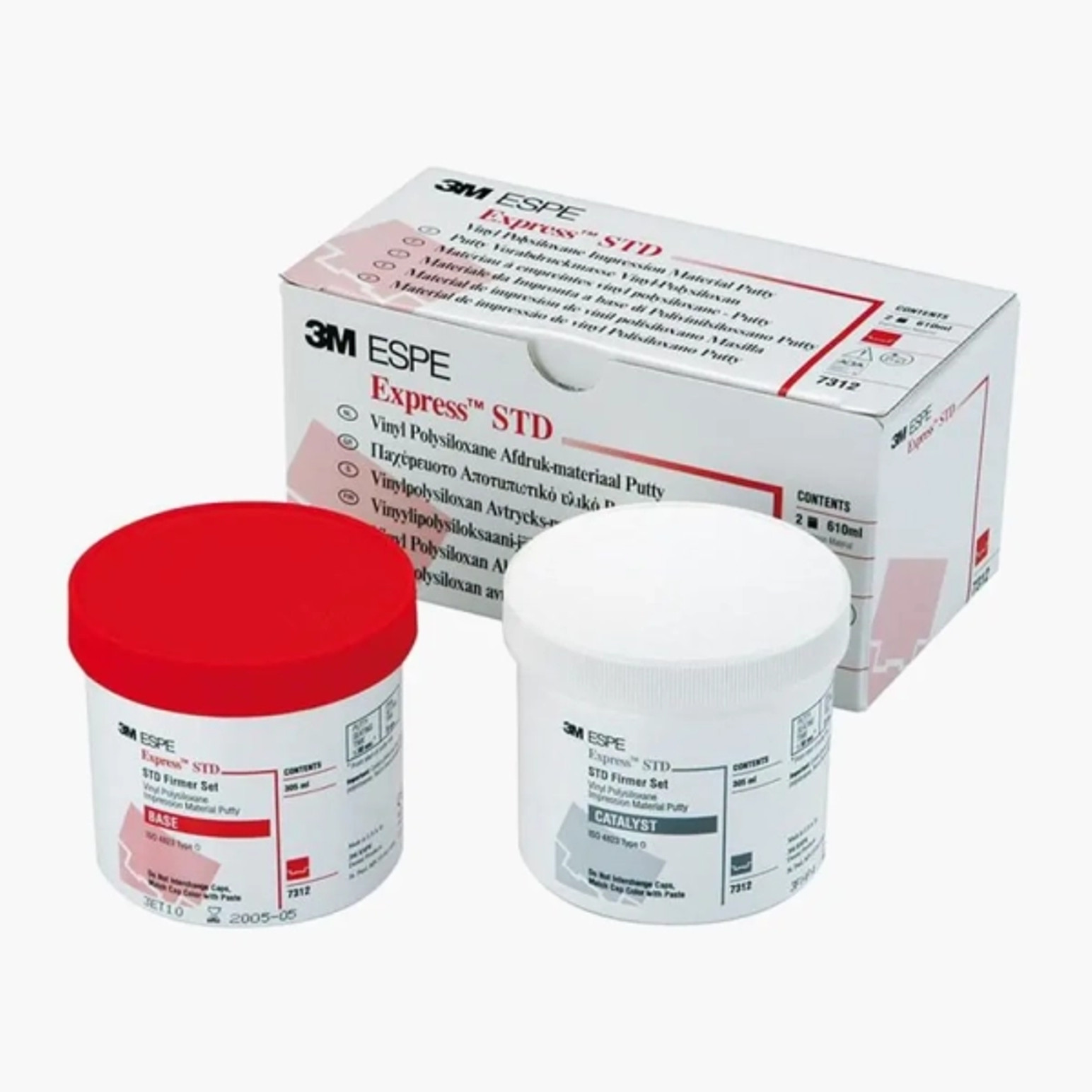 Стоматологическая винилполисилоксановая оттискная масса ручного замешивания Express STD в отдельной упаковке. Банки с массой Express STD для базового слоя (2 шт. по 305 мл).